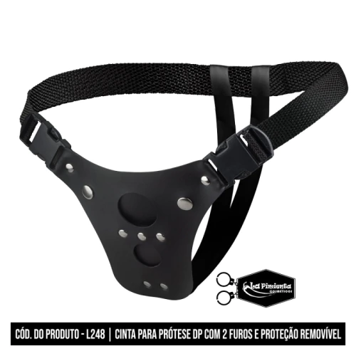 Feita em material resistente e elástico, ela se ajusta perfeitamente ao corpo, permitindo o uso com o pênis e um vibrador ou pênis de borracha (não incluso), proporcionando dupla penetração simultânea e muito mais prazer durante a relação.