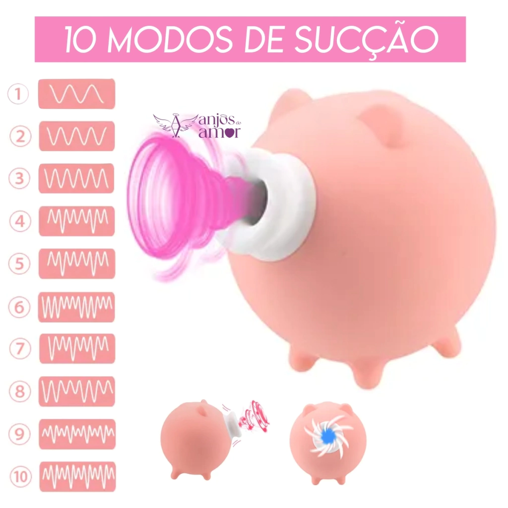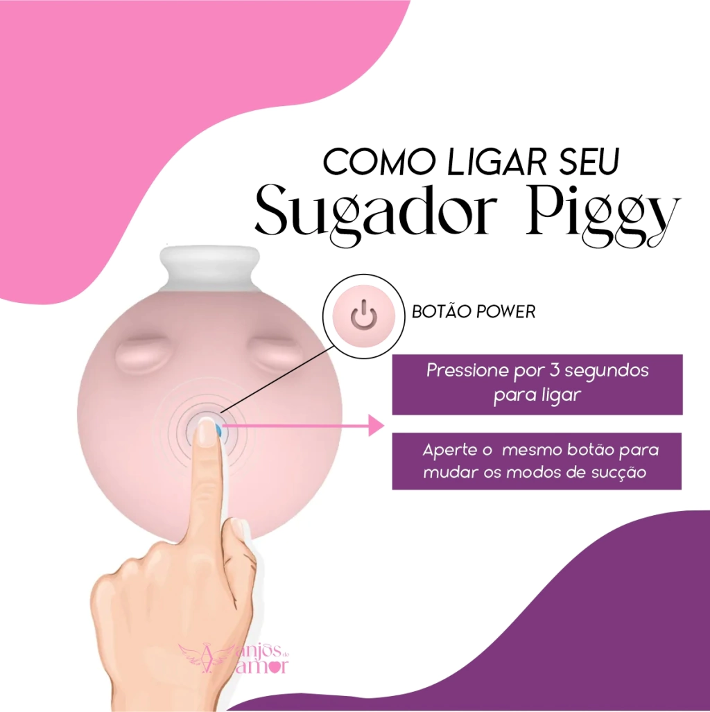 O Sugador Piggy é um dos mais pedidos por aqui, ele possui um encaixe perfeito para estimular o seu clitóris, tem uma boquinha toda revestida em silicone cirúrgico o que traz um toque superconfortável no seu clitóris. Além de ser hipoalergênico (um material que não te dá alergia), é recarregável, tornando a sua experiência mais longa e prazerosa.